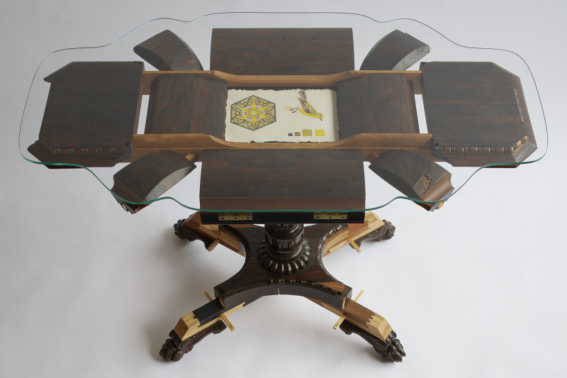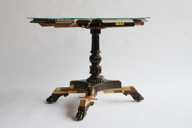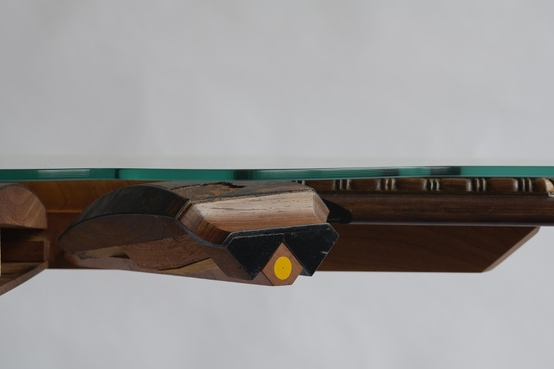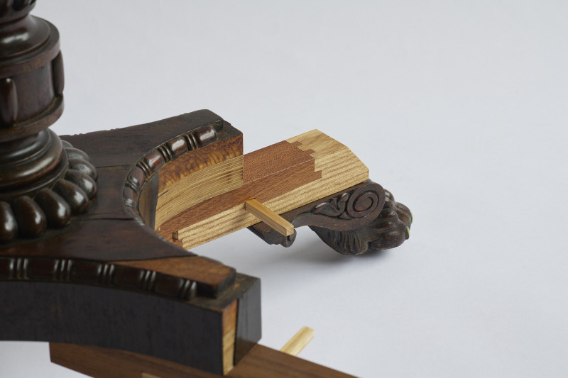 Since many pavilions are often discarded after their display period, we wanted to build in a more environmentally conscious way. Our main challenge: using material “off the shelf” without permanent alteration, so that everything could be easily disassembled and reused. We were able to achieve this through techniques like clamping, wedging, and tying with rope. WhenI make furniture, I want it to last forever, so I am happy to know that all the pavilion’s materials – from the Douglas Fir planks to the Portland stone – will have another life