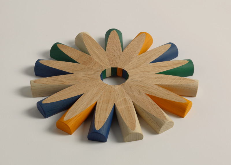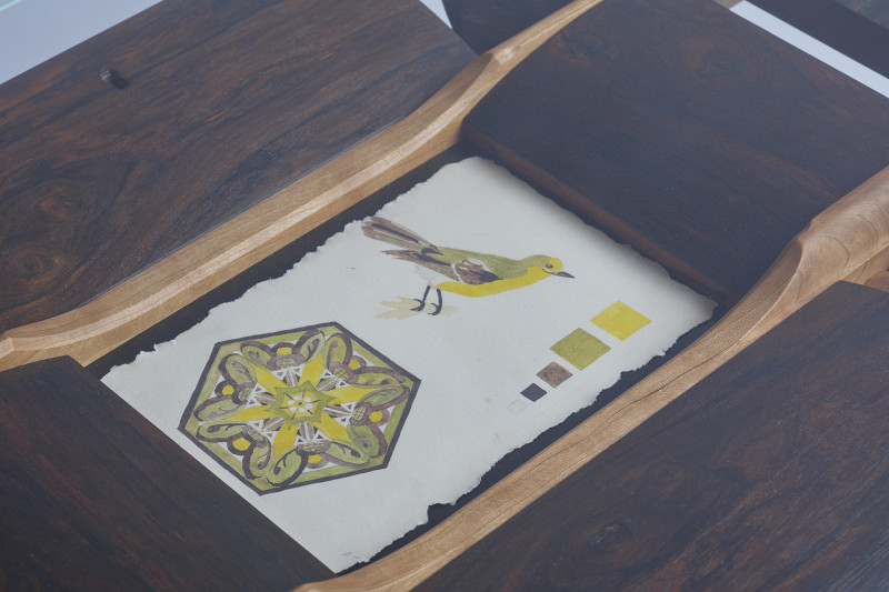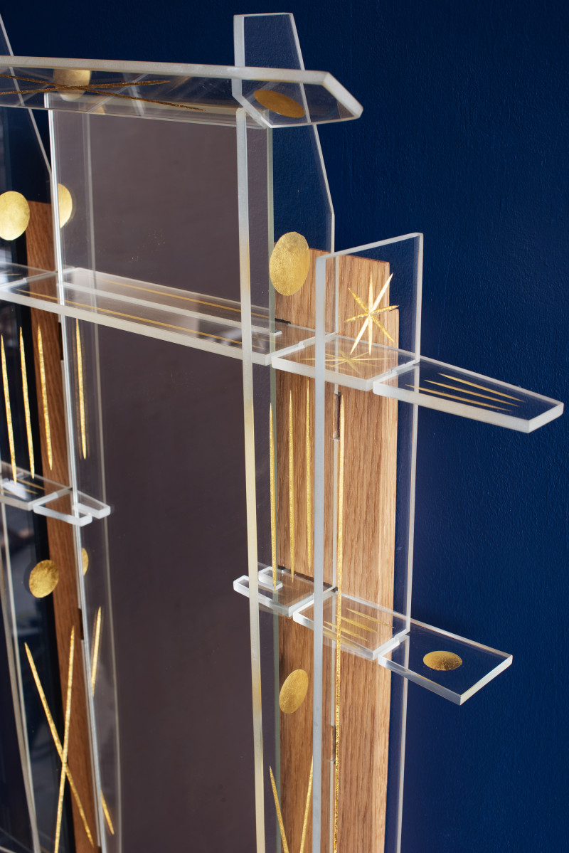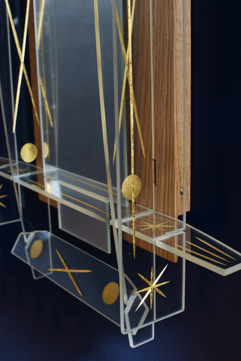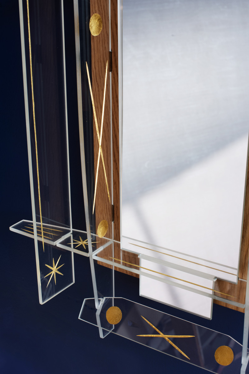 The end grain and sections of the wood planks are decorated in colourful paints and gold leaf. These details and colours were inspired by the 20th century movement in Austria, which was led by visionaries such as Josef Hoffman and Koloman Moser. Painting the end grain of wood structures is also a common feature of old Japanese buildings, such as temples and shrines, to prevent water damage and rot.