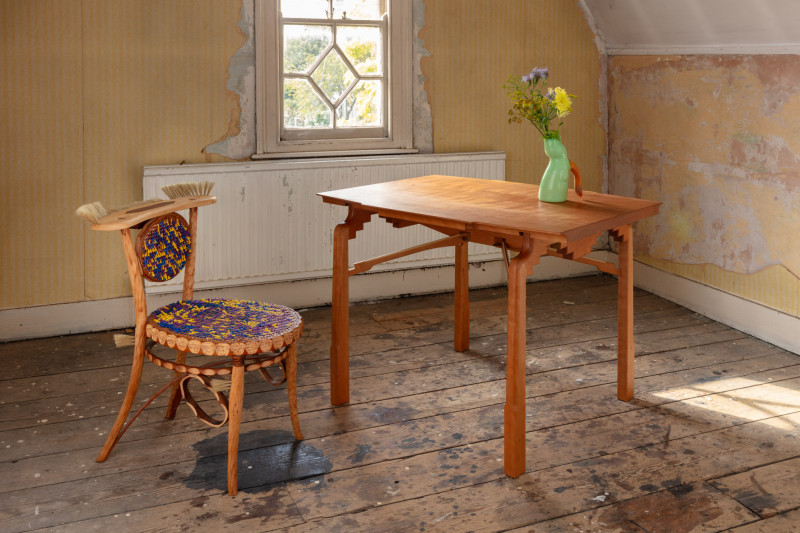 The pavilion’s design is largely influenced by my childhood home in the countryside of Japan, which my parents built. The aesthetic is a blend of a traditional Japanese house and a European Fachhaus – my father is Japanese and my mother isAustrian. They used lime plaster, along with salvaged material from a Japanese farmhouse, and I have many memories of helping them during the construction. Being in the countryside, I felt very close to nature – observing the wind blowing through the trees, the smell after heavy rains, and the warm feeling of sunshine.
