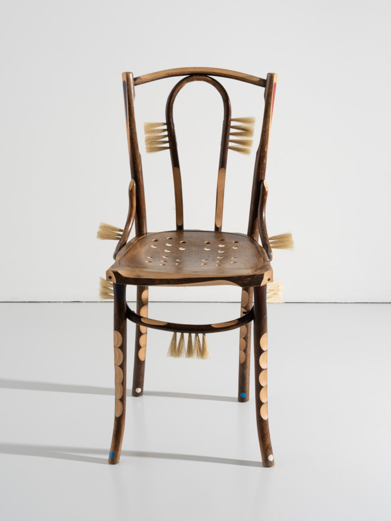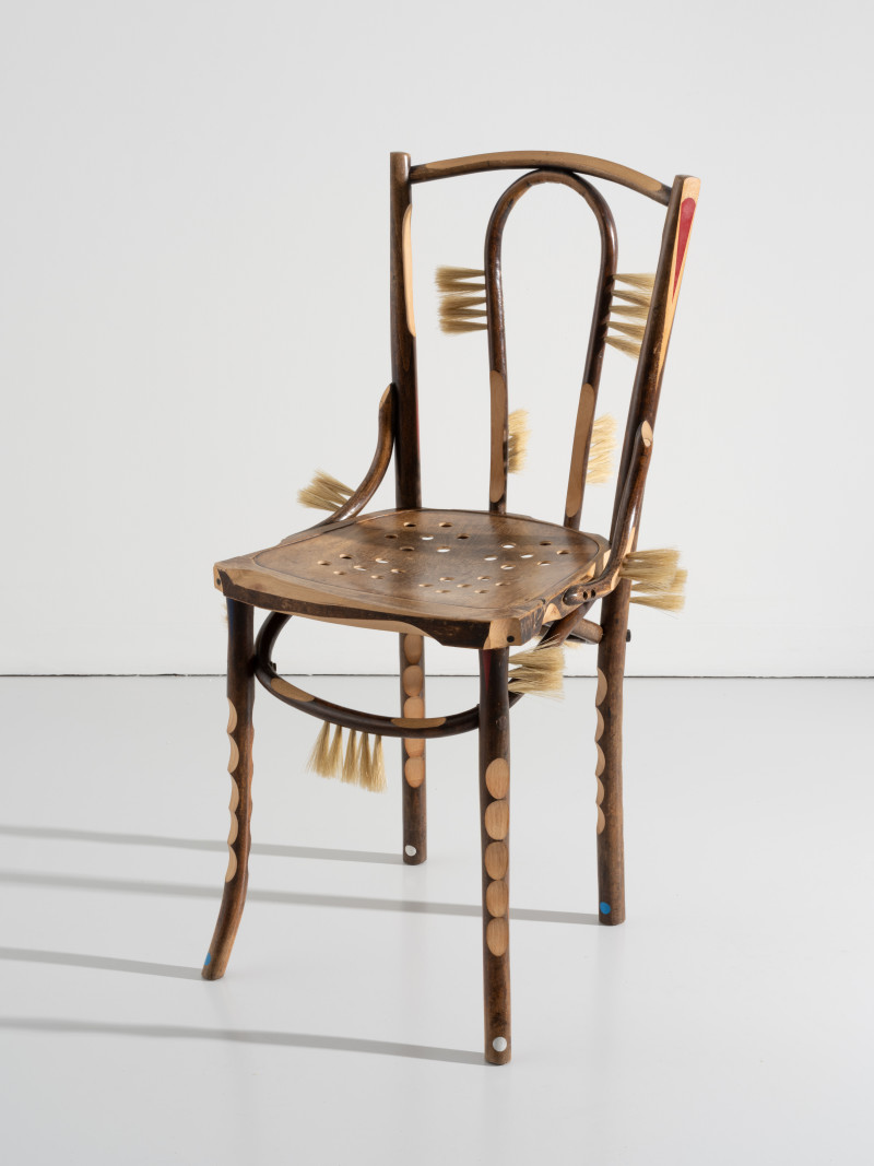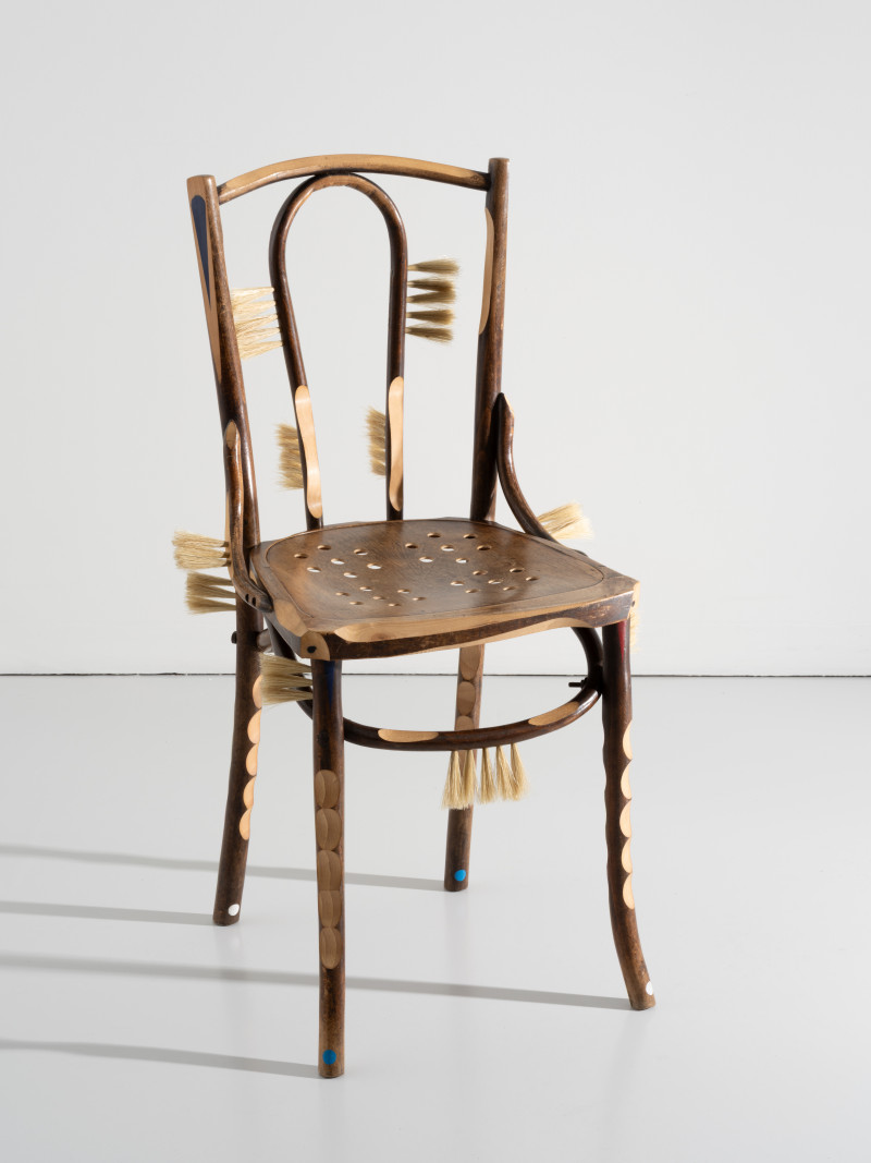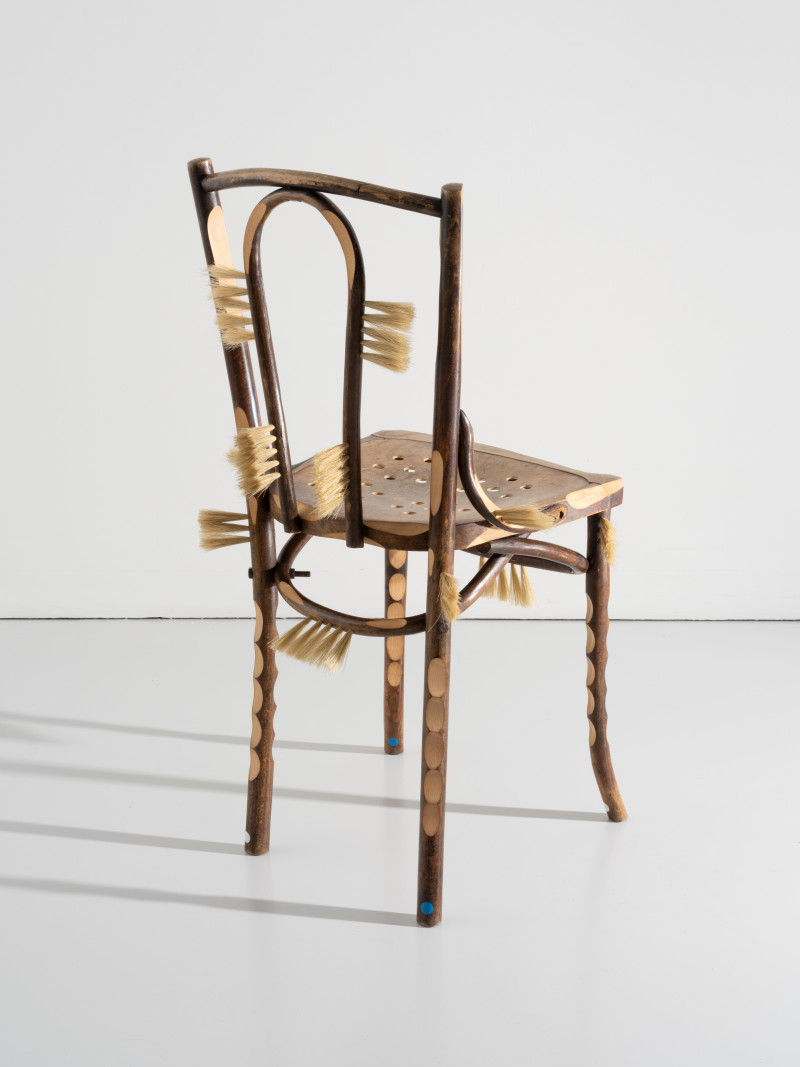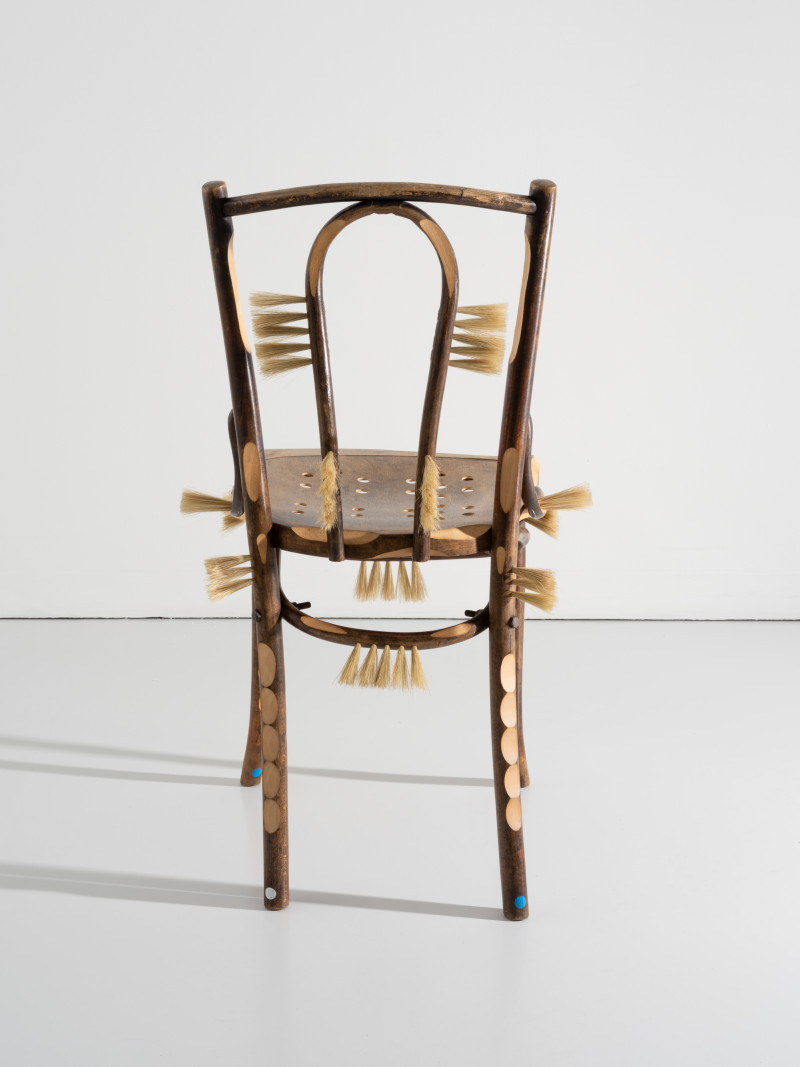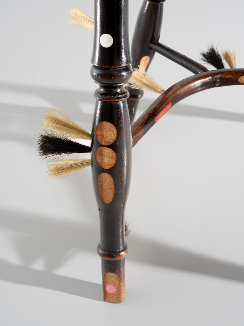 At the time, Kobayashi was teaching himself the art of brush making. He added several brush details to the chair, that together with the furry seat and back tells a story of an old person whose hair growth has got out of control.With a humanistic homage to the rich history of the chair, Kobayashi managed to turn the time of the pandemic into something positive.