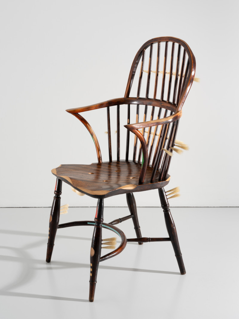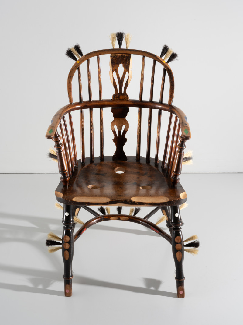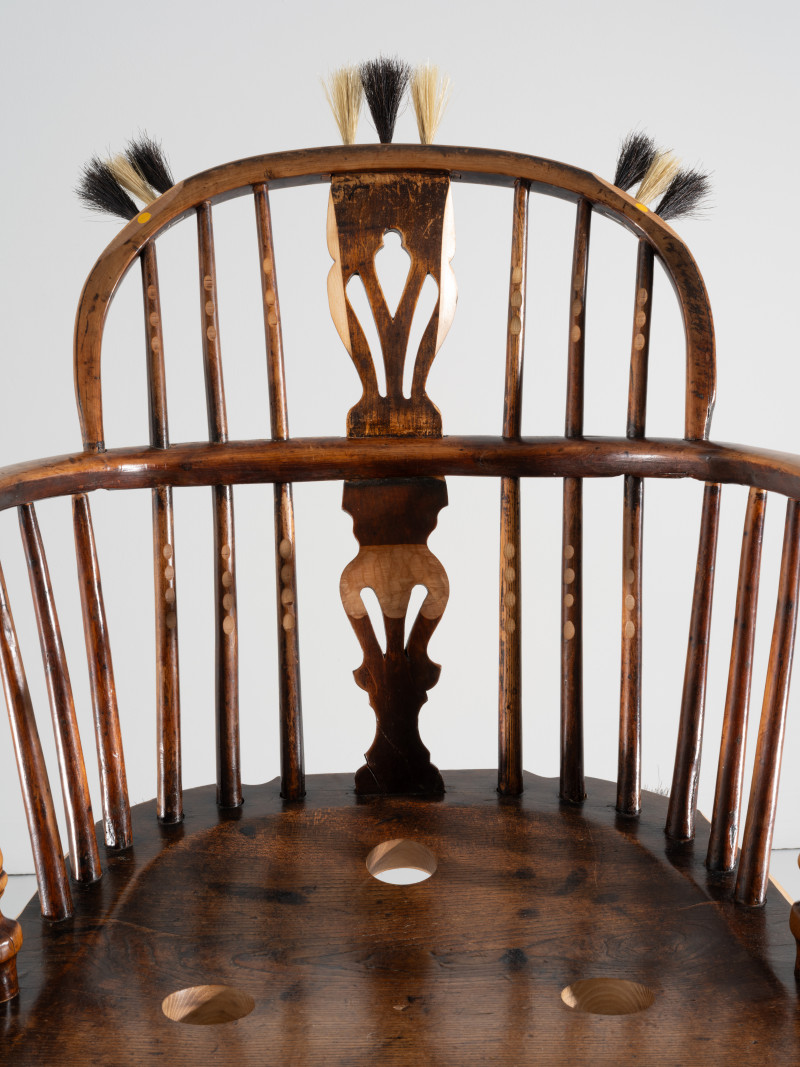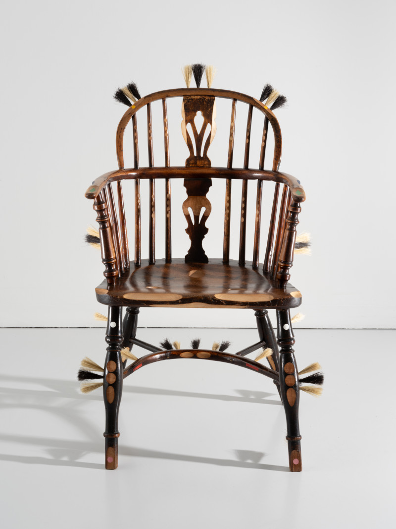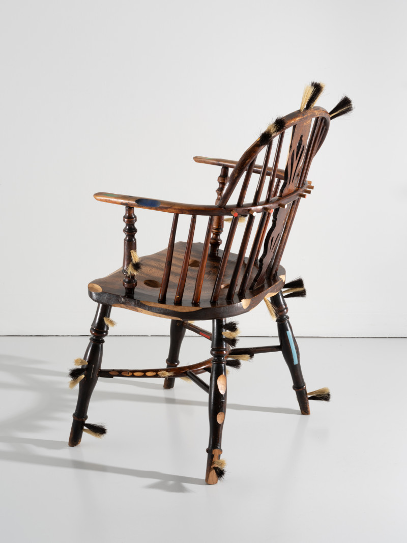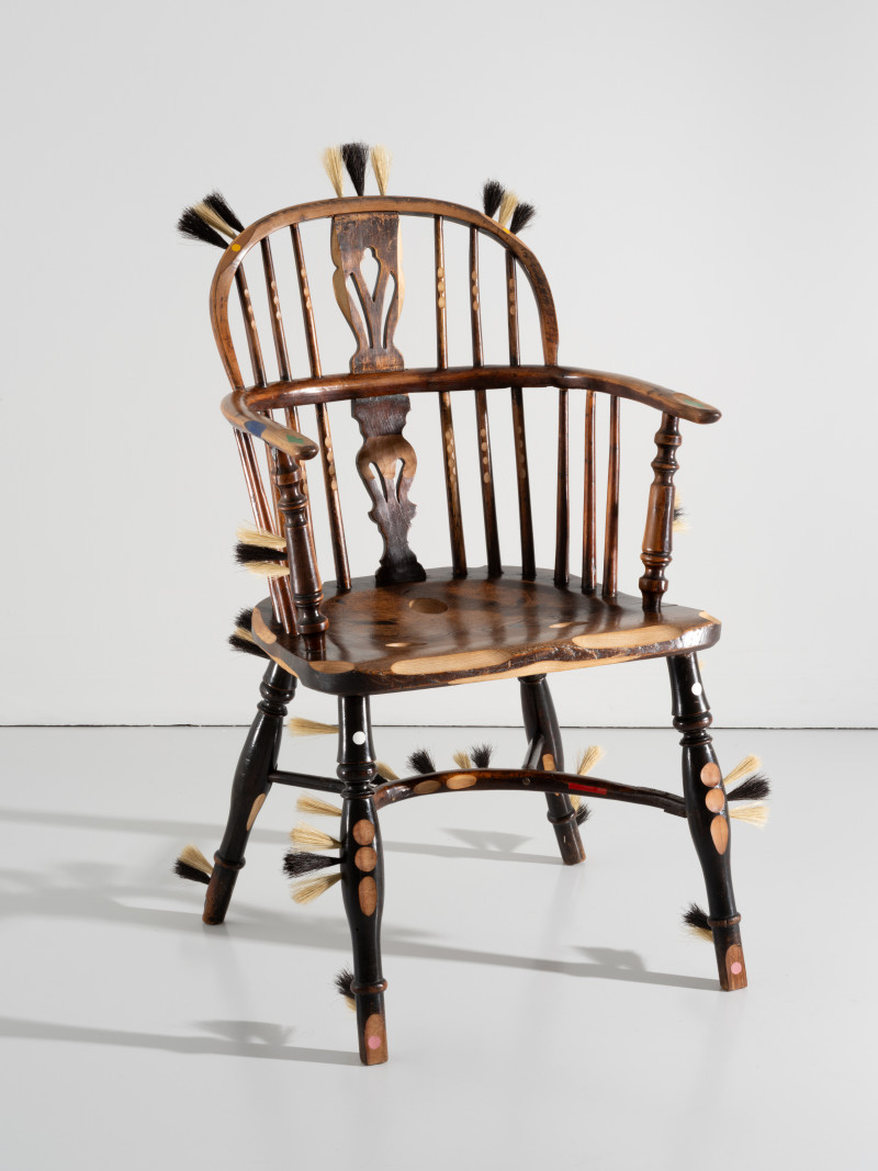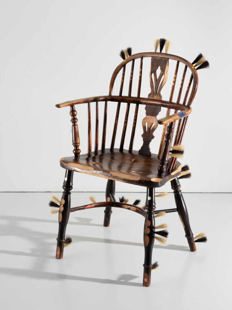 At the time, Kobayashi was teaching himself the art of brush making. He added several brush details to the chair, that together with the furry seat and back tells a story of an old person whose hair growth has got out of control.With a humanistic homage to the rich history of the chair, Kobayashi managed to turn the time of the pandemic into something positive.