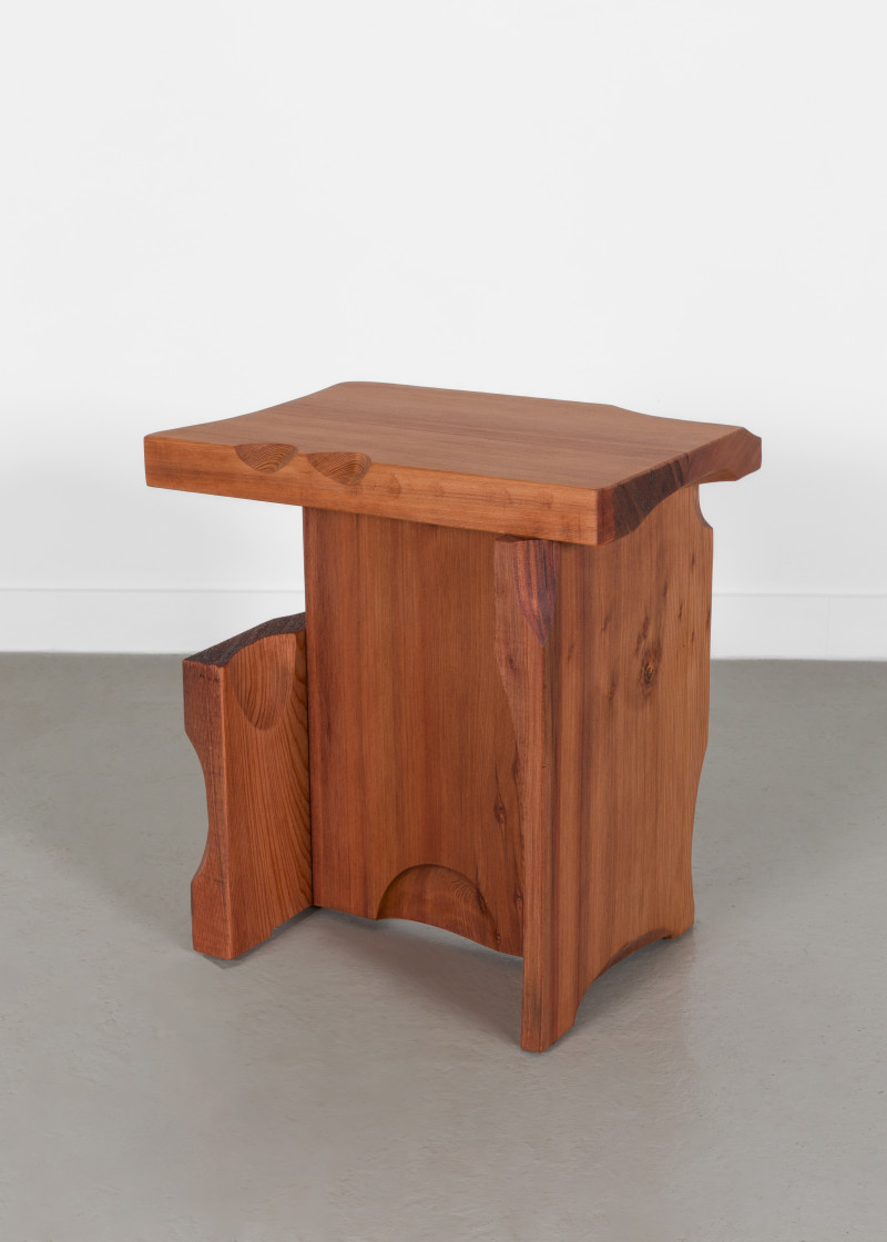 Using locally salvaged redwood, the furniture highlights the grain, texture, and marks in the material, which shaped both form and function. The pieces are practical but also invite close attention to detail and surface.