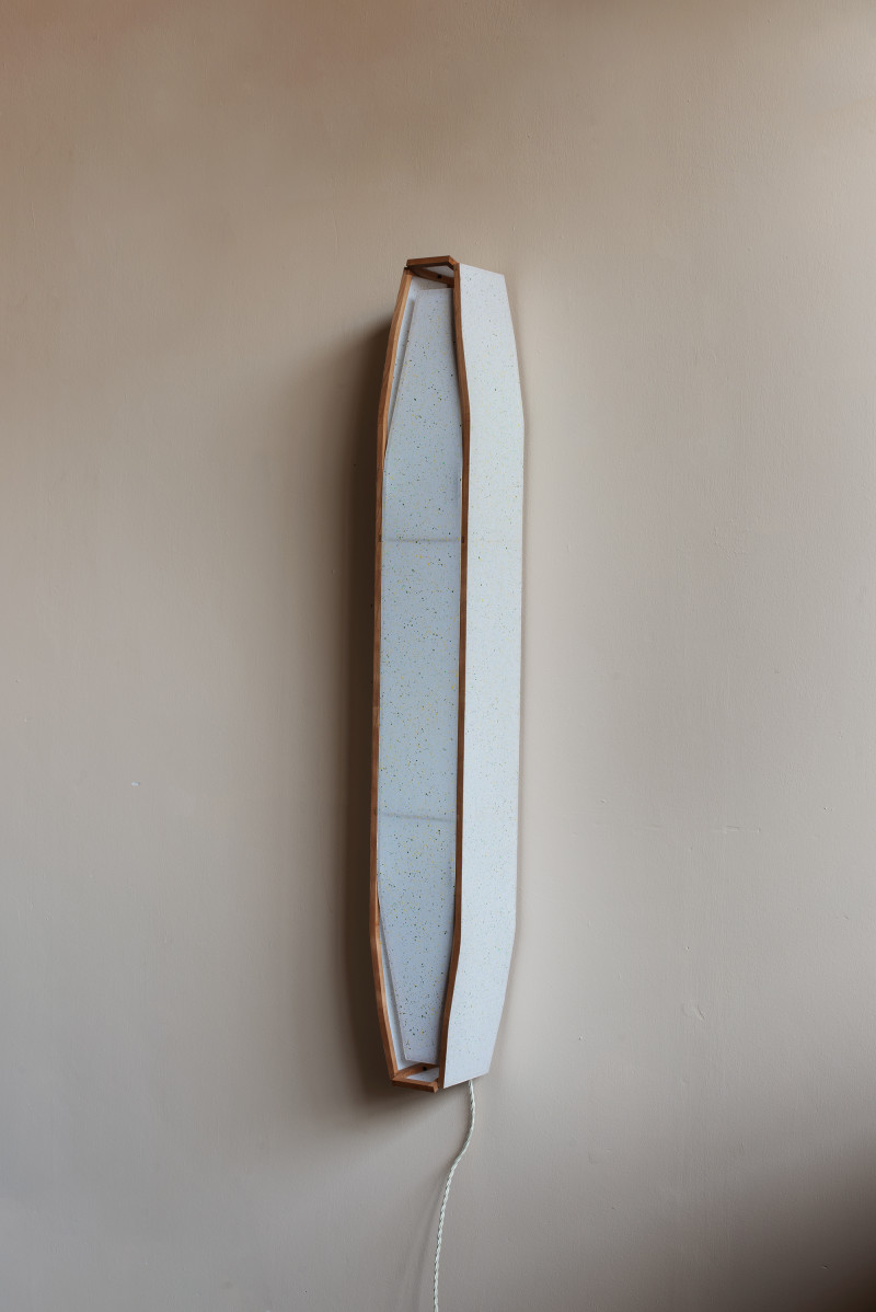 Kobayashi made this shelf during the first Covid-19 lockdown. He remembers the exact date: 5 May 2020. At that time he was spending most of his life inside his flat in London and outside in the little adjacent garden. Having had a sense of what was about to come before London was in lockdown, he evacuated a few of his tools and some leftover wood from his studio when he saw what was happening in Asia.
