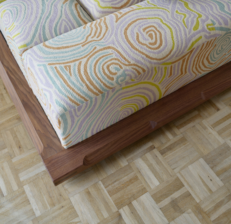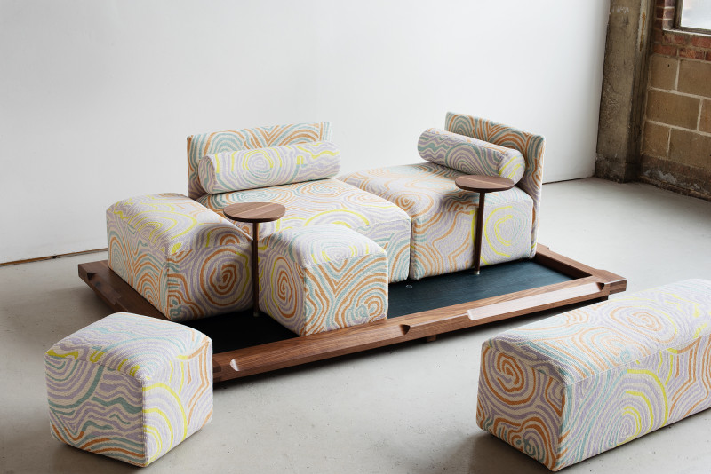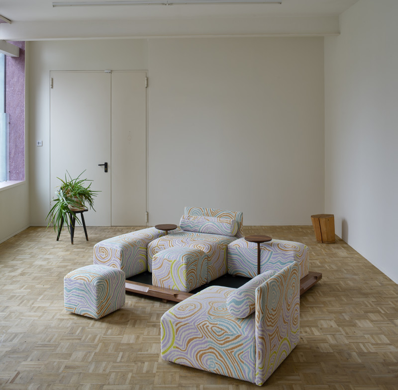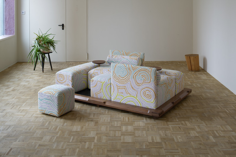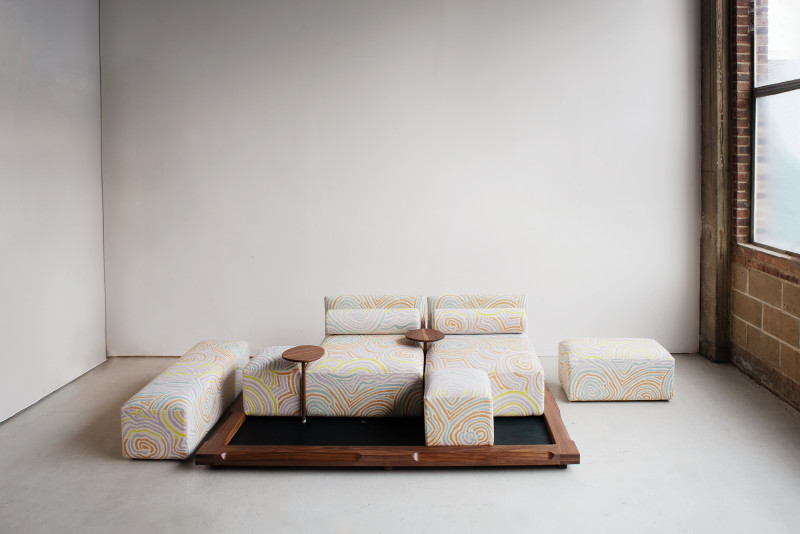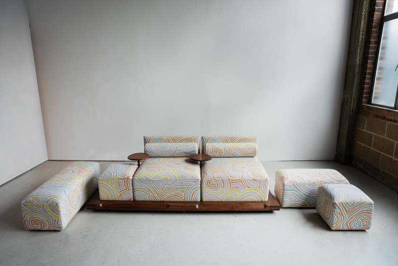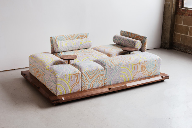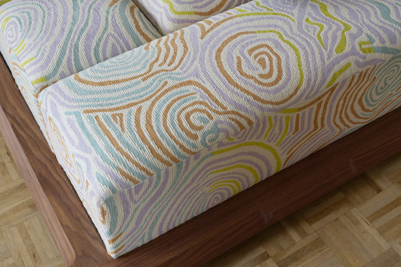 The name ‘Piece of Cake’ humorously reflects Kobayashi’s experience in designing his inaugural upholstery piece.Accustomed to creating his designs in his own workshop, the upholstery design process demanded a more holistic approach to crafting a convivial object, as well as a newfound attention to detail in textile.The Piece of Cake Sofa is covered with textile from Peter Pilotto x Christopher de Vos’s “Phase 02” collection.